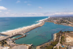 Carlsbad Aquafarm is nestled between the Pacific Ocean and Interstate 5, in the waters of the Agua Hedionda Lagoon. (Credit: Jackson Fleming)